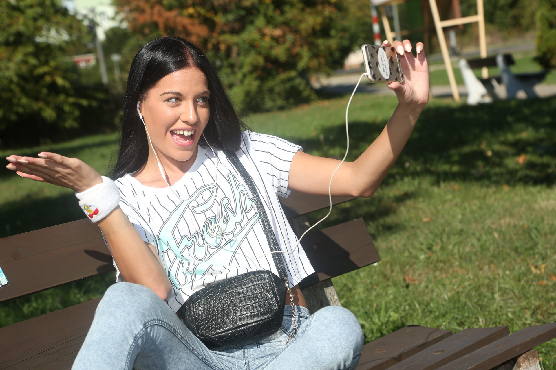Light-haired teen Sammie Daniels takes a ultra-cute walk after ending her classes