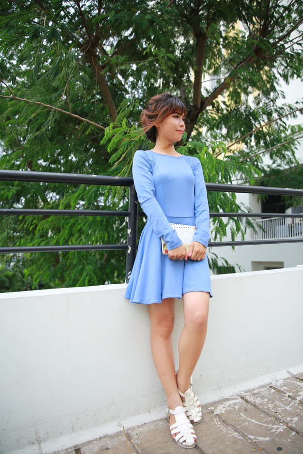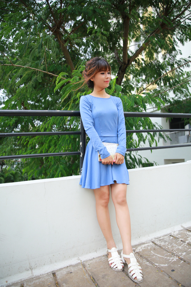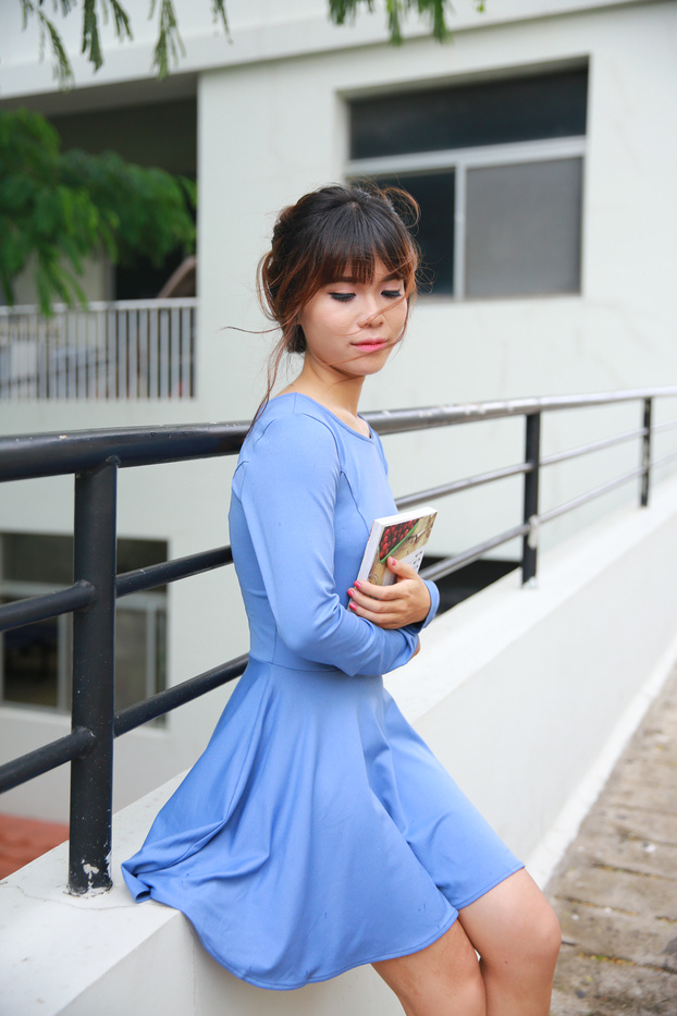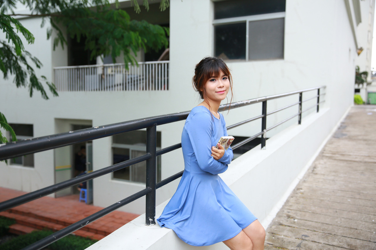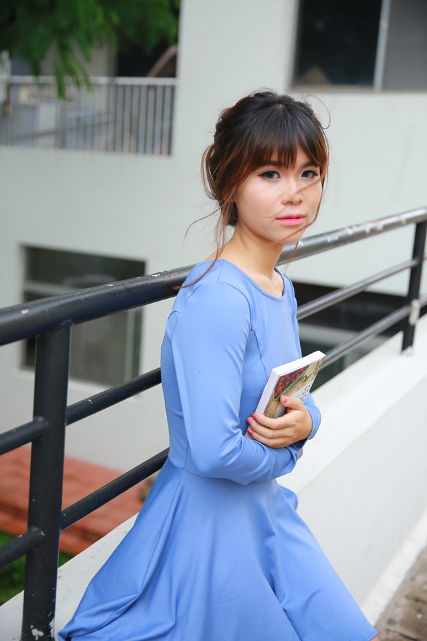 Light-haired teen Sammie Daniels takes a ultra-cute walk after ending her classes