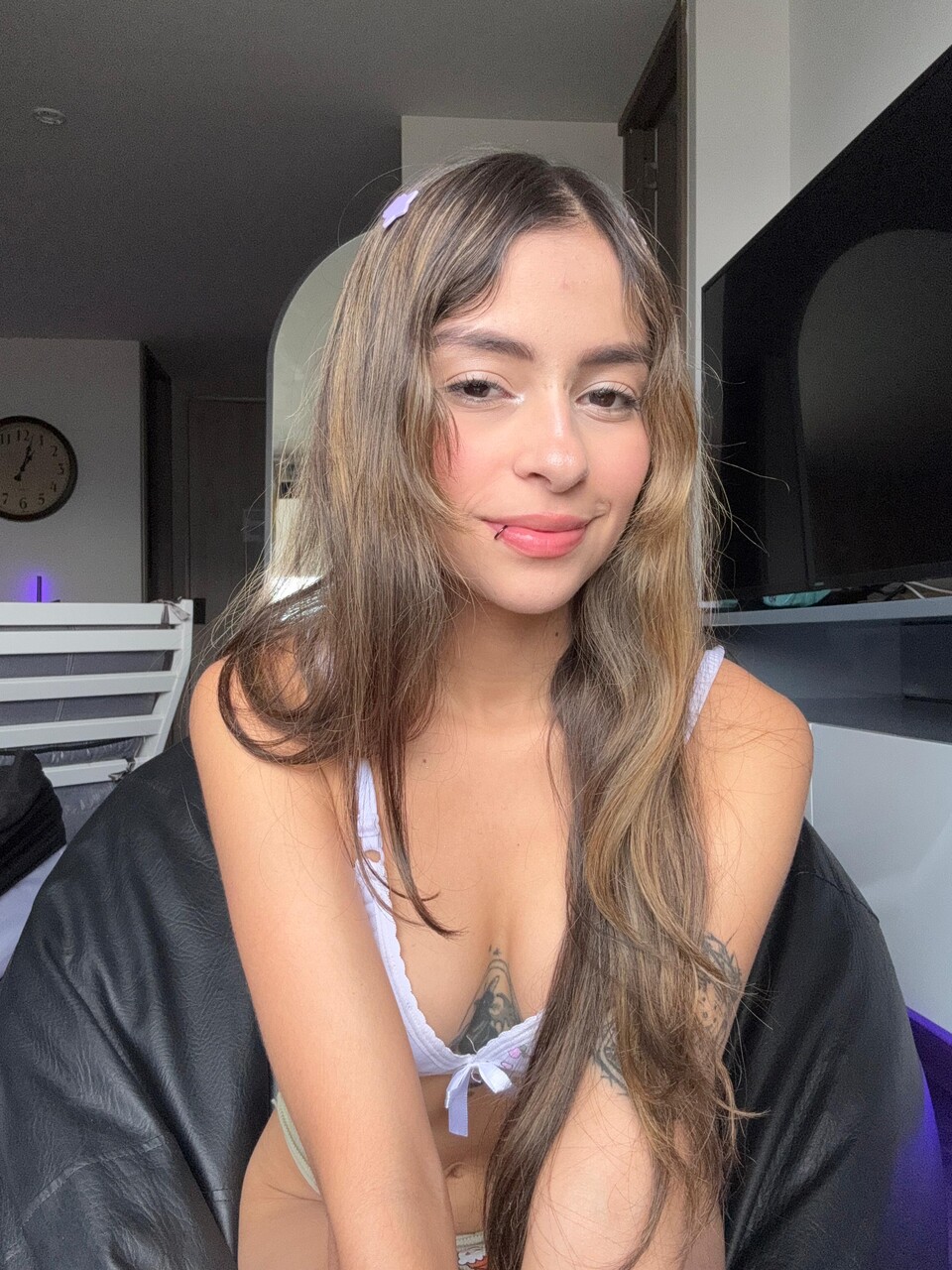 Uber-lovely teenie Kay J peels off her suspenders & panties to stretch her muff