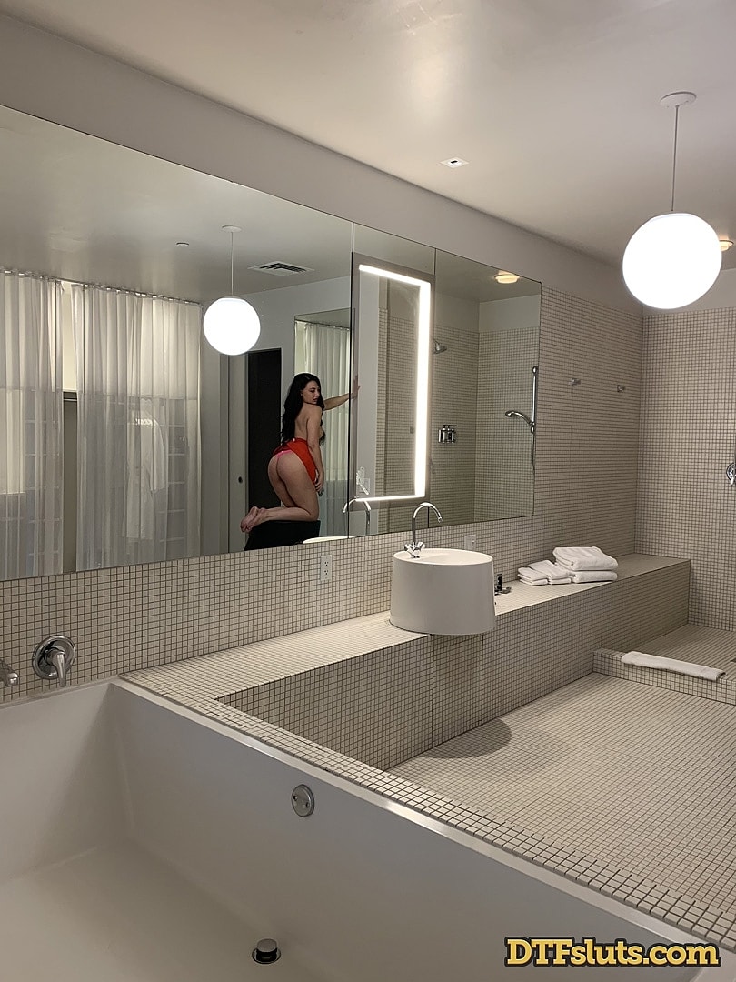Stunning teenage Savana strips and showcases her saucy jugs and massive arse