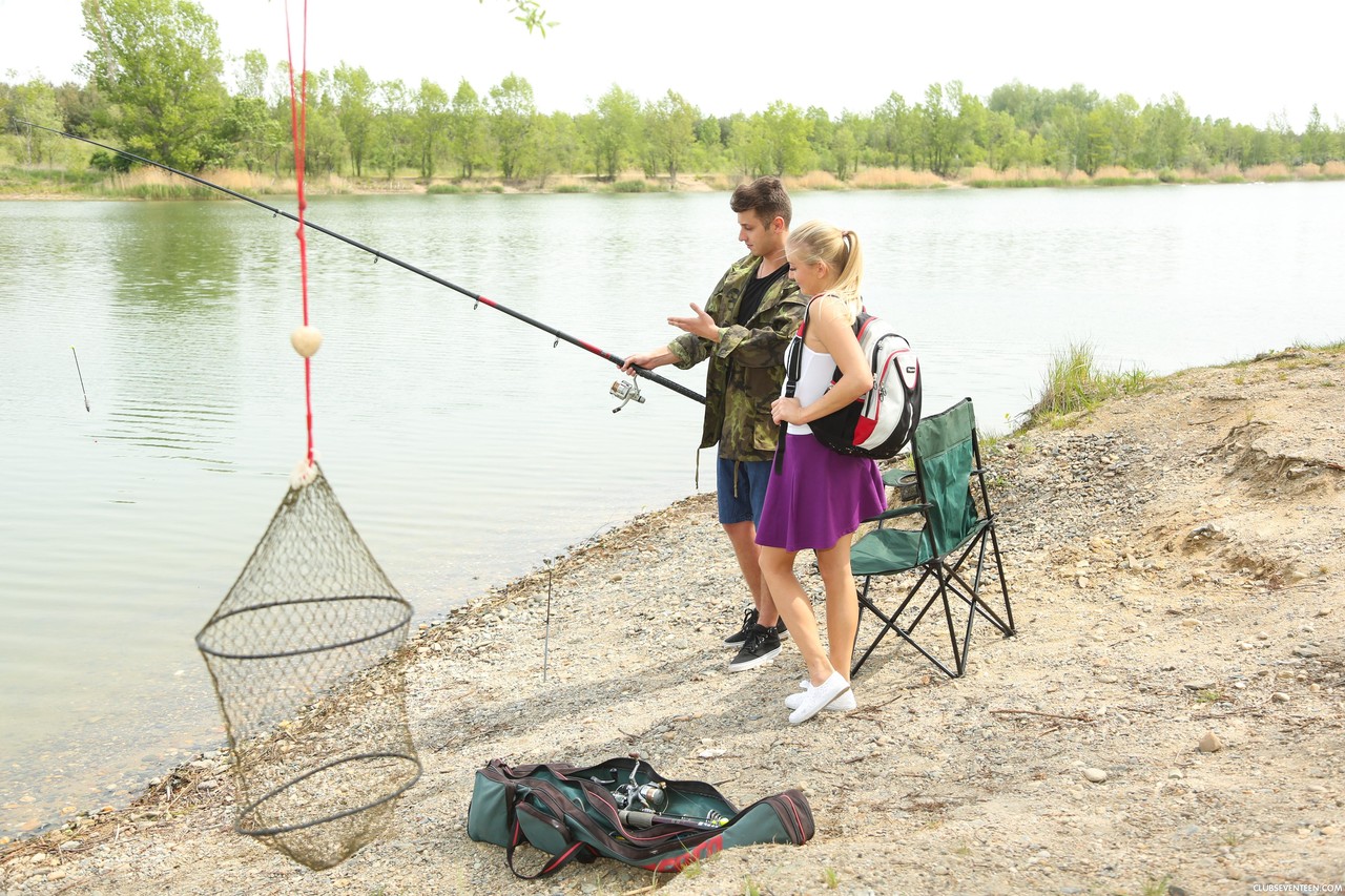Blonde bombshell seduces her man while he tries to fish and ends up getting nailed
