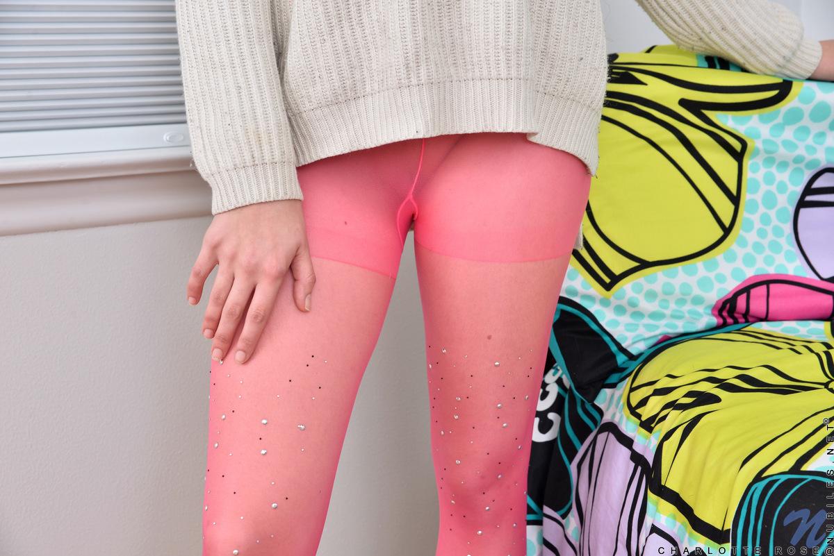 Charlotte Rose flaunts her pinkish pantyhose in steamy action