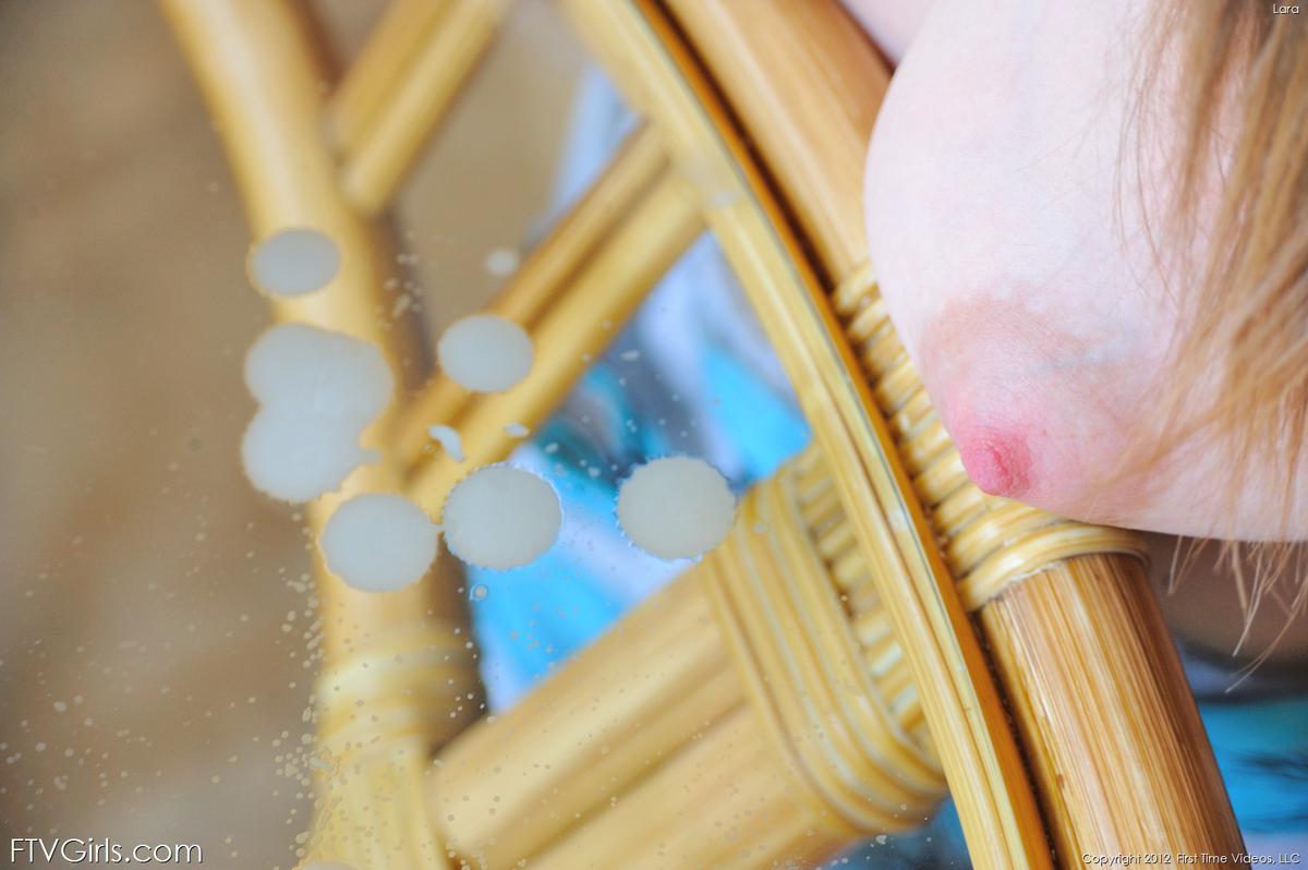 Yummy skinny nubile Ruth displays off her adorable juggs and bald poon on a couch