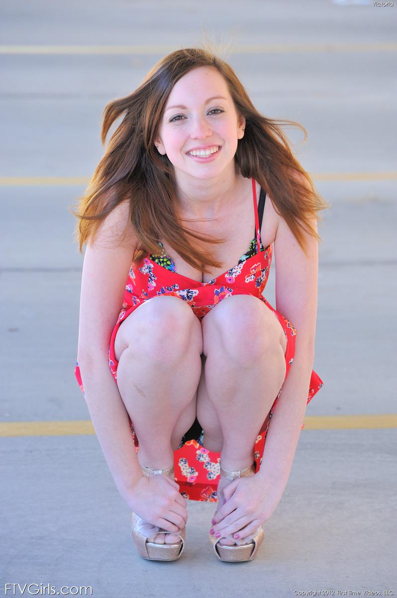Yummy skinny nubile Ruth displays off her adorable juggs and bald poon on a couch
