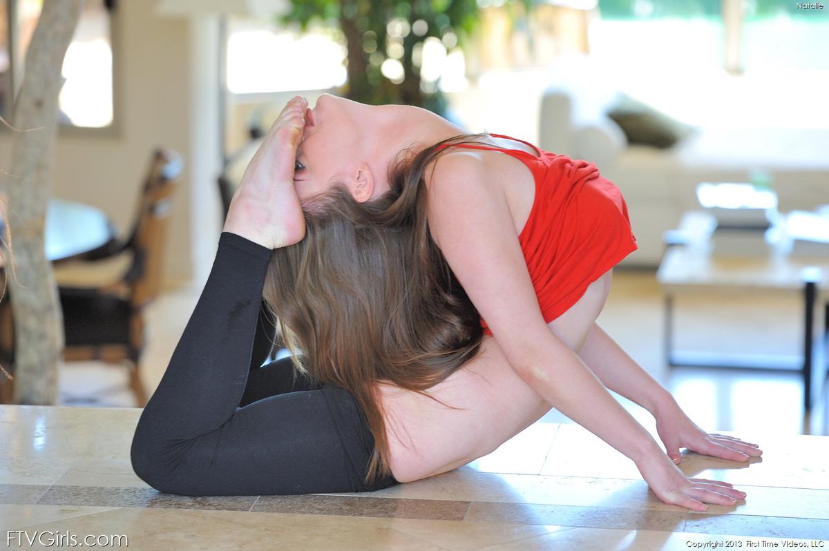 Teenage Yulia Bright Fills Her Bald Poon With Shag Catapults After Taking Off Her Cut-Offs In The Garden