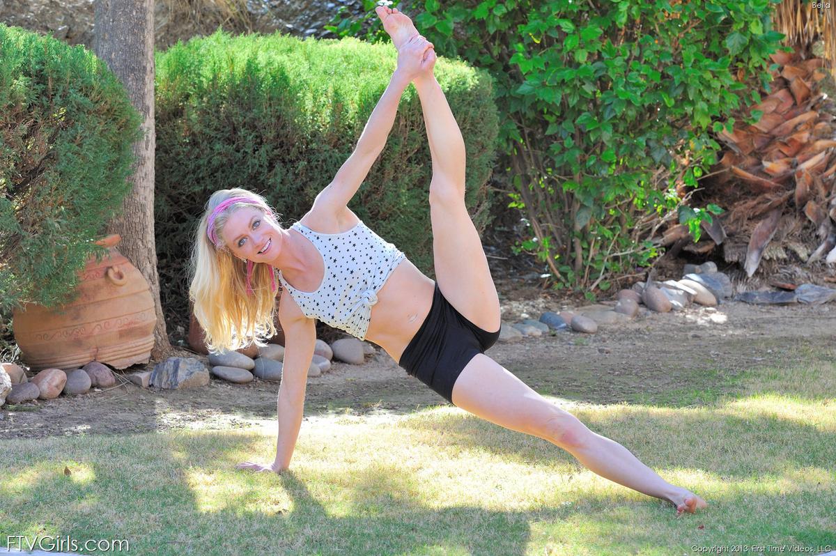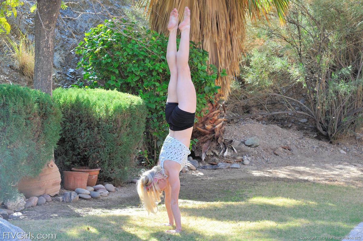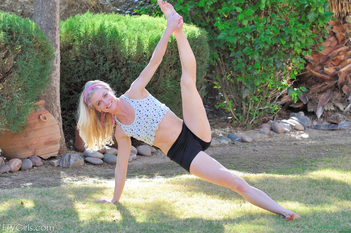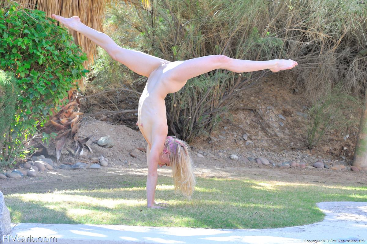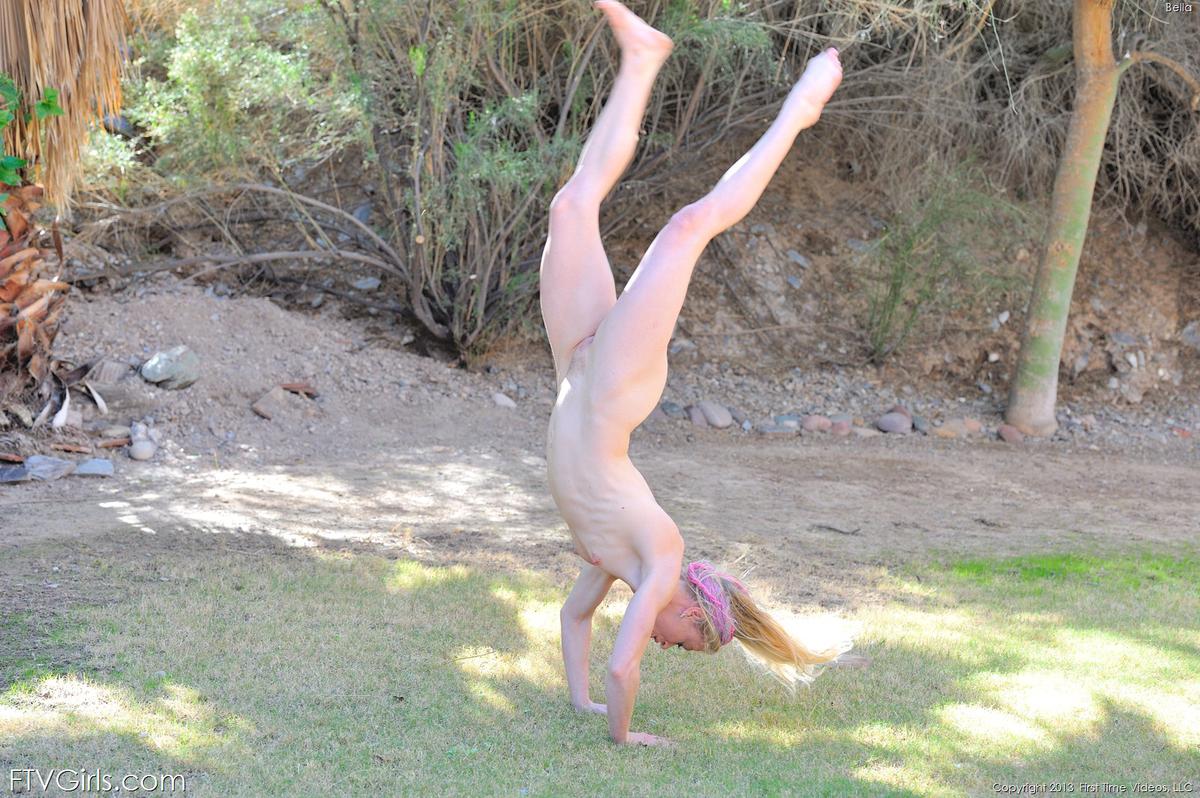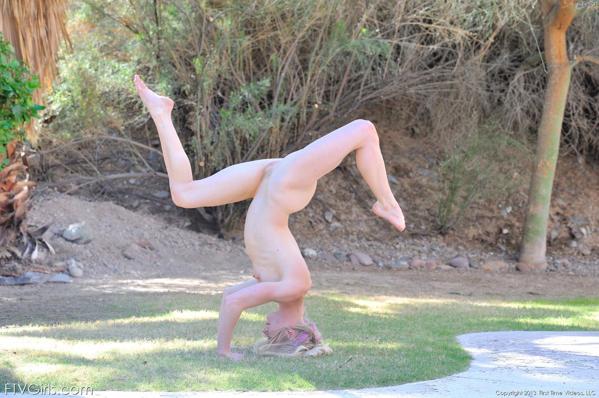 Yummy skinny nubile Ruth displays off her adorable juggs and bald poon on a couch