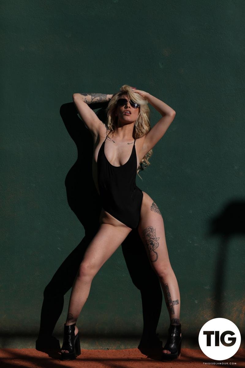 Stunner Viva flashes her torrid muff in public while posing in her summer dress