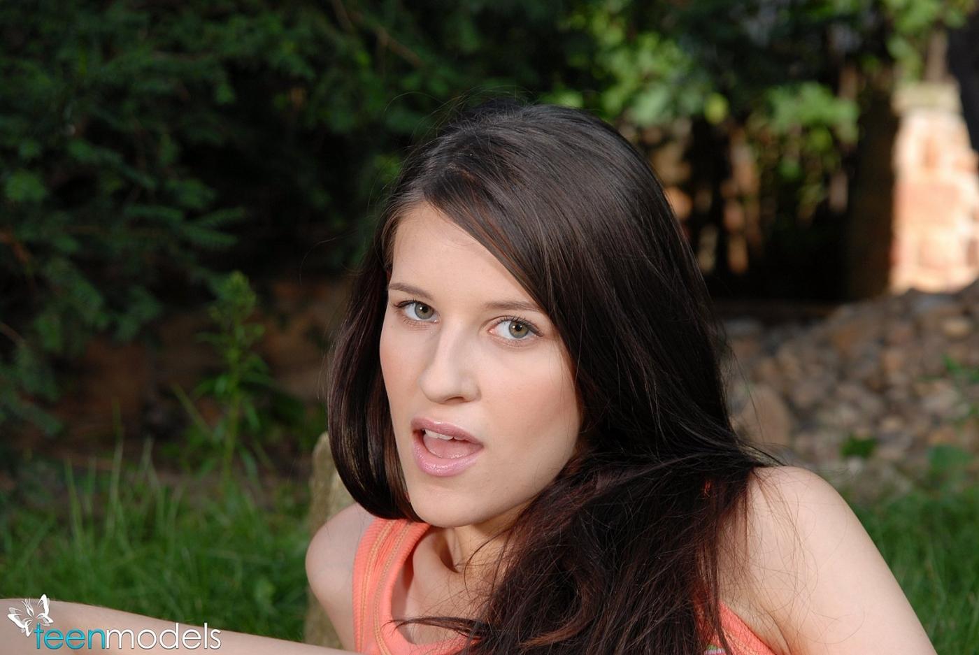 Teenage Yulia Bright Fills Her Bald Poon With Shag Catapults After Taking Off Her Cut-Offs In The Garden